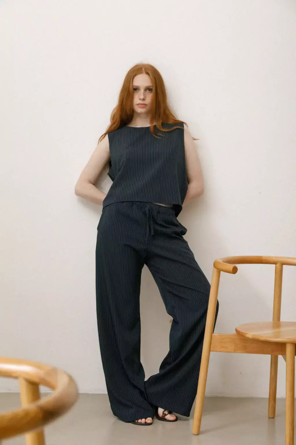 De tiro medio-alto y pierna amplia, cae recto hasta el piso logrando un look relajado pero elegante.
