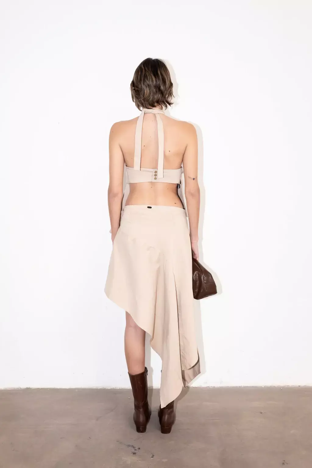 El top Morissette en una prenda irregular e intuitiva. Su moldería se construye con recortes encastrados. Es una pieza de diseño con la cual vas a sentirte única. Tiene escote halter, tiras para atar en cuello y se puede usar de muchas formas distintas ya que en el delantero tiene botones que permiten modificar la prenda a gusto y hasta desarmarla para quedarse con un top mucho mas simple. Esta confeccionada en Bengalina que es un tejido plano que elastiza hacia los costados otorgando comodidad, y buen agarre. Composición: Rayon 68%, Nylon 28%, spandex 4%.